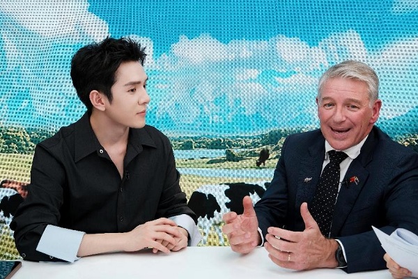 图说:新西兰贸发局CEO PeterChrisp在李佳琦直播间与观众互动