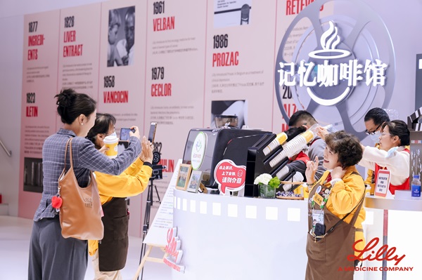 本次进博会,礼来展示了其在糖尿病、肥胖、阿尔茨海默病和抗肿瘤等全球关键疾病领域的最新进展,诸多创新成果备受瞩目。有别于别家展台的咖吧,礼来的“记忆咖啡馆”吸引了诸多参观者打卡。记忆咖啡馆用充满情怀的老胶片,呼吁大众提高对于阿尔茨海默病的认知。