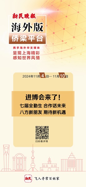 2024年11月4日-11月10日,新民晚报海外版侨梁平台,携手海外华文媒体,呈现上海精彩,感知世界风情。第七届中国国际进口博览会如期召开,新老朋友汇聚,创下多个“历届之最”。展馆内,高科技新设计纷至沓来;农产品特色品积极入场。论坛上,交流合作分享经验,共话进博机遇与“双向奔赴”……