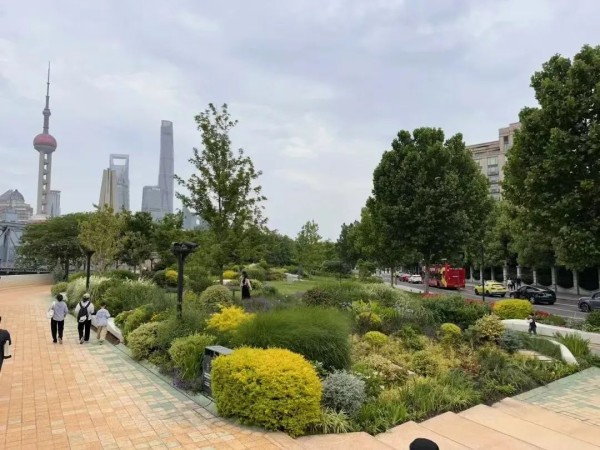 走在外滩街区,走入外滩最美花园,不管是路过还是停下脚步驻足,都可以感受到它的历史、人文温度,花园为行人营造出更惬意、更舒适的停留、交流空间和氛围。花园以林为调、以草为趣、以石为径,112米长的浪花花境体现出以河为史、以滩为文、以园抒情的外滩逸园浮筑的空间时光;以花为媒,将划船俱乐部与外白渡桥连接,在苏州河畔卷起流动的浪花,白鹭展翅翱翔,将悠久的船文化历史概念与生活艺术有机结合和完美体现。