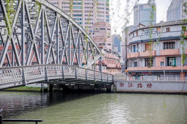 “浙江路桥落成于1908年,桥体构造是当时的高科技“钢结构变截面桁架桥”,这种桥能够承受高荷载。因为当时桥上要通过有轨电车,以连接当时租界的南北区域。