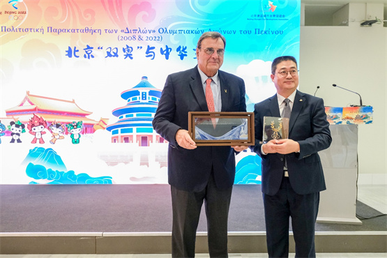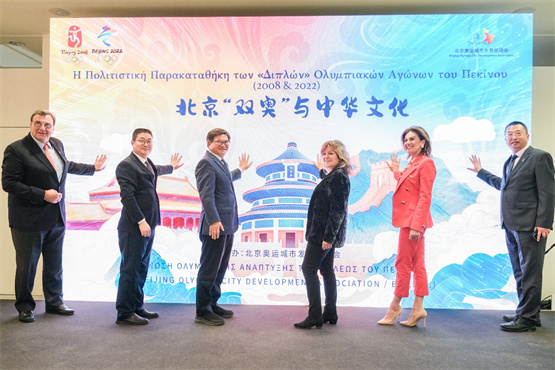 希腊时间11月11日晚,由北京奥运城市发展促进会主办的“北京‘双奥’与中华文化”主题展览在希腊雅典市政府新文体中心开幕。希腊教育、宗教事务和体育部体育总秘书长乔治斯·马夫罗塔斯,希腊奥委会主席斯皮罗斯·卡普拉罗斯,北京奥运城市发展促进会副会长兼秘书长付晓辉发表视频致辞,希腊卫生部部长阿佐尼斯·乔治亚季斯,中国驻希腊使馆临时代办赖波,国际奥林匹克学院主席伊斯左罗斯·库弯罗斯等出席并致辞。雅典中国文化中心主任王江涛、希腊外交部公共外交国际交流司司长埃夫西米奥斯·阿萨纳西亚迪斯、雅典奥林匹克博物馆馆长艾莉娜·佩奇利瓦尼迪及希腊各界代表200人参加开幕式。