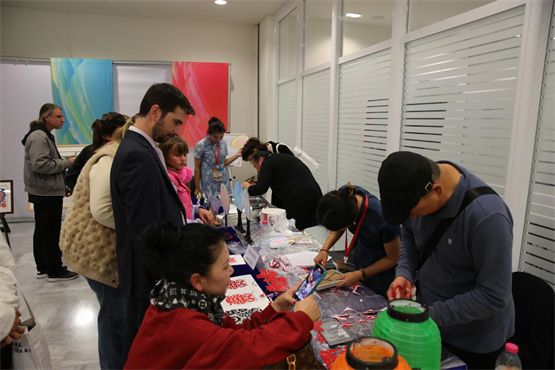 图说:民众体验剪纸项目