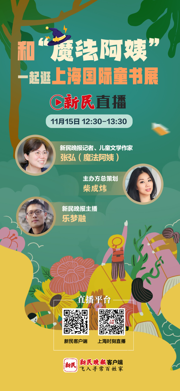 第11届中国上海国际童书展将于11月15日开幕。15日12:30-13:30,新民客户端与“上海时刻”视频号将推出新民直播,新民晚报主播乐梦融和儿童文学作家、“魔法阿姨”张弘,会同主办方总策划柴成炜,将在上海世博展览馆现场带大家一起逛展,找一找好看好玩的童书。
