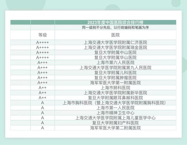 图说:上海地区上榜的医院