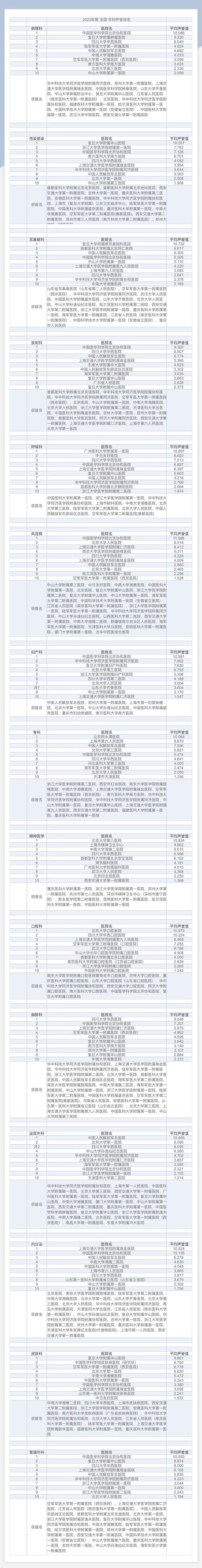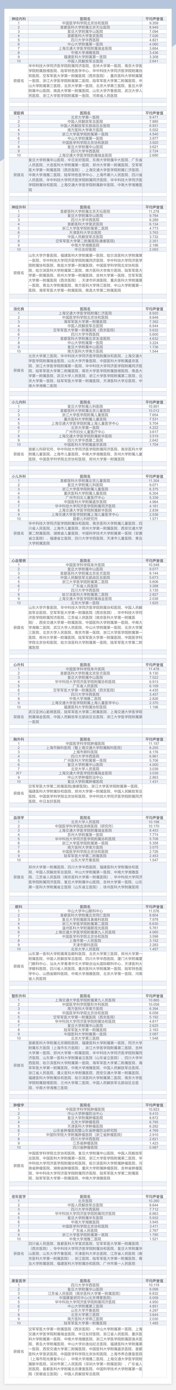 附:中国医院专科声誉排行榜