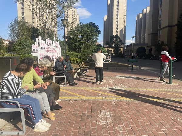 惠南镇建欣苑小区内的居民主要是来源于黄浦区、杨浦区的纯动迁安置人员,老年人居多,不少居民还保留着“老习惯”:喜欢在楼下找个地方歇一歇、唠唠家常。但小区内原有休闲设施大多存在掉漆、木板断裂等现象,很多无法满足居民的需求。