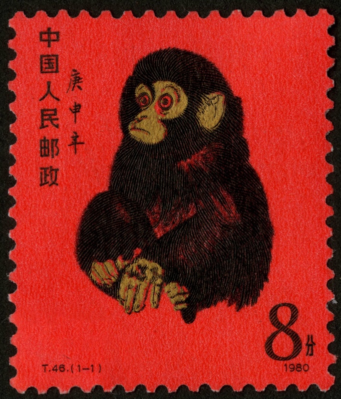 记得那是1980年5月间的一天,有个亲戚的传呼电话过来,我去弄堂口的公用电话间回电。爱好的习惯,顺便看了一眼旁边代售邮票的夹票板,居然看到一长溜红底色的邮票。感觉这种邮票的图案与往常的普通邮票迥异,仔细看大小与普通邮票相仿,但纸面突出的黑猴却让我兴奋——这是我最喜欢的雕刻版!
