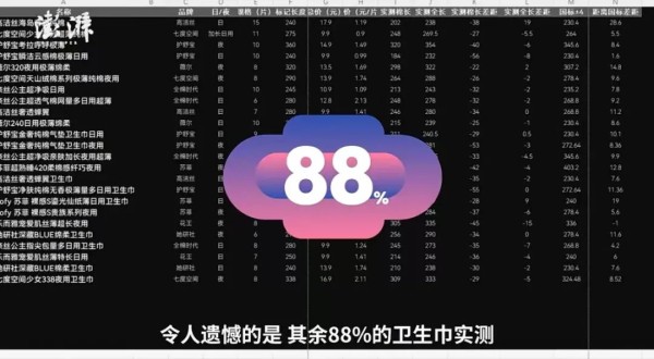 88%的卫生巾
