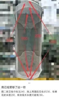 还有人提出,很多卫生巾包边长度符合国标,但吸收棉芯的长度却短了很多。据此认为,国标没有为吸收棉芯长度设定标准,似乎也存在漏洞。