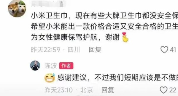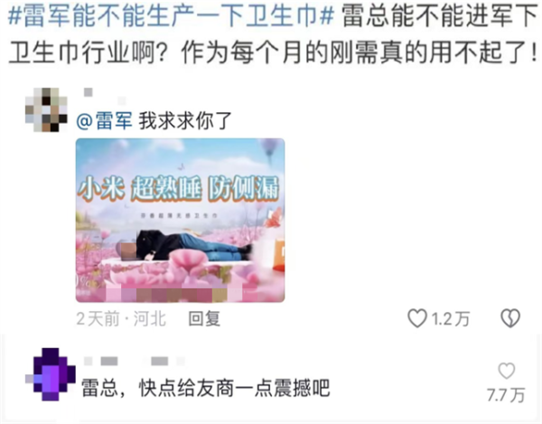 网友喊话雷军生产卫生巾?