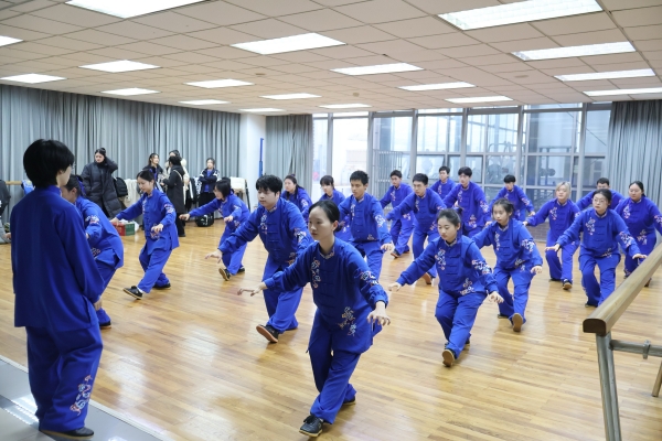 图说:2023年上海市学生阳光体育大联赛五禽戏比赛热身