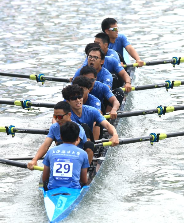 图说:上海海洋大学学生在赛艇比赛中 采访对象供图(下同)