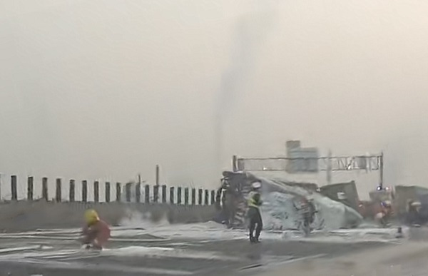 新民晚报讯(记者 陈浩)今天清晨6时16分,S32申嘉湖高速往浦东机场方向过S4沪金高速立交,发生一起半挂货车侧翻起火事故。截至记者上午发稿,事故仍在处置中,无人员伤亡。