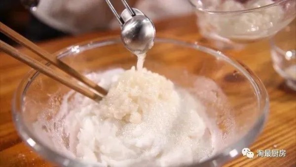 如何判断面糊拌好?用筷子拎起来形成一个小尖就说明拌好了。