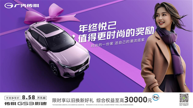 而传祺GS3影速正是年轻人大件的时尚潮品,尤其是“一份紫”的配色,配以哑光质感,呈现独特但不张扬的美,大街上出行即能斩获超高的回头率。不但颜值高,传祺GS3影速还将融合了遥控泊车、融合泊车和后向自动刹车等功能的高阶智驾系统罕见地拉入到10万级,让年轻人在有限的预算内,享受更超前的智能用车体验。