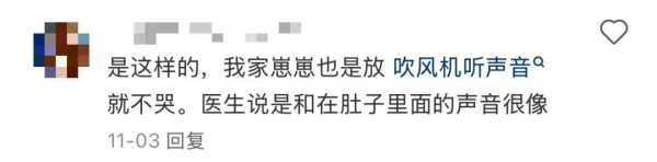 原来吹风机发出的声音是一种“白噪音”,其音频和胎儿在子宫内的羊水音频接近,会让婴儿很有安全感。