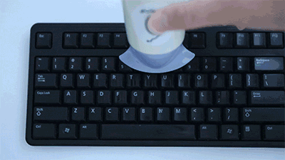 在关掉电脑的电源后,用吹风机沿着键盘的缝隙吹冷风,灰尘就都出来。