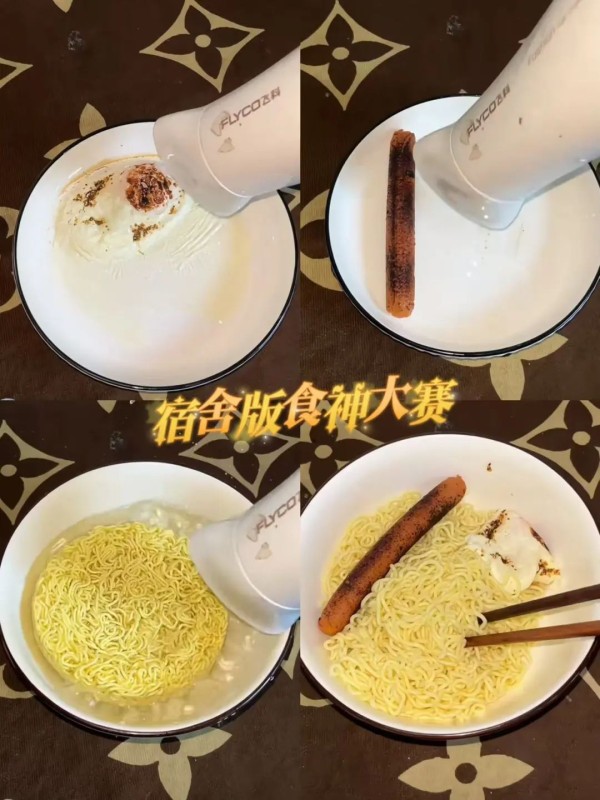 食堂饭菜不好吃,宿舍又不让用电磁炉,于是大学生们发明出了电吹风泡面。