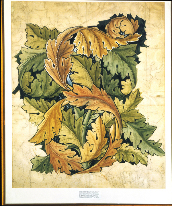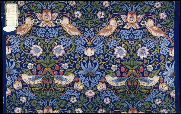 图说:“草莓小偷”家居纺织品,威廉·莫里斯设计,约1883年,靛蓝拔染木刻印花棉