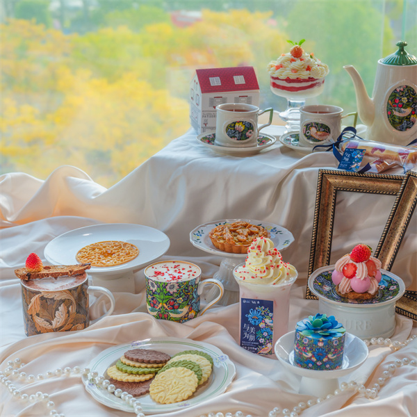 参观者可以在代表作《草莓小偷》的编织物前打卡拍照,临展厅连同世博会博物馆常设展厅,水晶宫模型让观众自然穿越到第一届世博会的盛况,把威廉·莫里斯的作品,和有着千丝万缕联系的世博会历史联络起来。好看又好吃的衍生品、涵盖上海站限定款的文创全部上架,在琳琅满目的眼福之外,观众在展期内能享受到莫里斯主题的咖啡和精美点心,用草莓小鸟的杯子品味一杯主题咖啡或者英式下午茶。