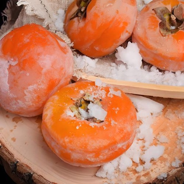 与梨子一起冰冻的,还有柿子。冻柿吃起来沙沙的,有冰激凌的口感。在我的山东老家,家里栽了一棵高大的柿子树,高已越过天台。深秋后,柿子渐渐成熟。父亲会爬上天台,把刚刚泛红的柿子摘下来,塞在两个大纸箱里,满满当当的,快递到我们上海的家中。于是,整个深秋,连着初来的冬季,我们家中到处弥漫着柿子的香气。我抽两个晚上,坐在饭桌旁,伴着米黄的灯光,把柿子一个个洗净、削皮,用尼龙绳将柿蒂一个个串联起来。爱人把它们挂在窗外天棚上的钢丝上,串柿下面是养得葱郁的花草,绿意和橙红色的喜庆融合,衍生出一种诗意的存在。