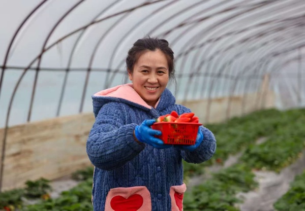 今年,王南南在石桥村经营了30亩的草莓大棚,为了能抢占市场先机,他从8月初就开始进行育苗移栽,采用蜜蜂授粉和有机肥种植等方式,保证草莓产量和无公害品质。“这里挨到河,土质也比较好,所以我们的草莓要长得更加香甜。”王南南介绍,现在每天根据客户需求进行采摘配送,日采摘量在两三百斤,到了春节前后,日采摘量可以达到几千斤。