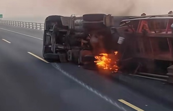 新民晚报讯(记者 陆常青)昨天傍晚5时3分,东海大桥往洋山港方向发生一起集卡侧翻事故并造成车辆起火。事故发生后,相关救援单位赶赴现场处置,所幸事故未造成人员伤亡。