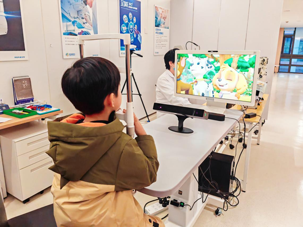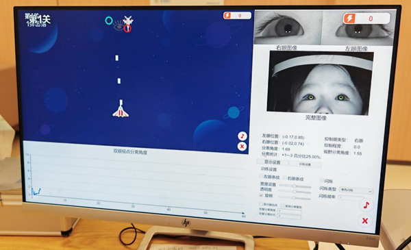 在上海普瑞眼科医院视觉与学习困难门诊视功能训练室内,一场别开生面的“游戏挑战”正在上演。六岁的涛涛(化名)紧盯着眼前的视训屏幕,兴奋地说:“我过了第10关!厉害吧!”一旁的视训师梁瓅月边操作着精密的眼动仪,边鼓励涛涛:“你真棒!继续用双眼追踪屏幕上的球哦!。”“对比传统、较为枯燥的视觉训练,这种通过玩游戏、看动画片来训练孩子视功能的方法,更能让低年龄段的孩子接受。”梁医生表示。