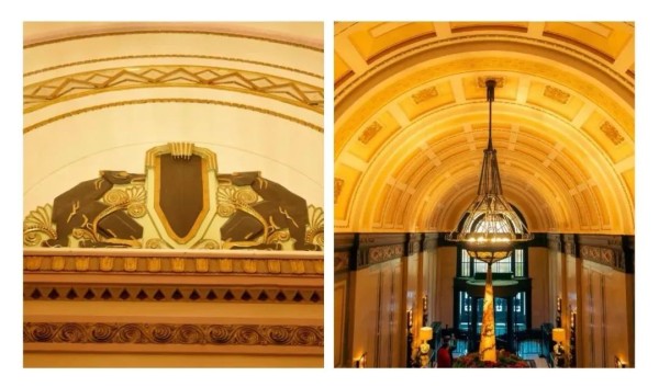 沙逊家族猎狗族徽(灵缇犬)与和平饭店旋转门、镂花吊灯↓