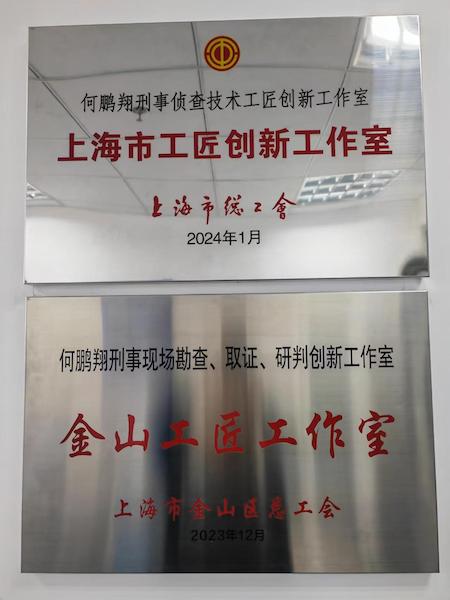 何鹏翔是上海市公安局金山分局刑侦支队刑科所民警,2022年8月,以他名字命名的刑事侦查技术工匠创新工作室挂牌成立。多年来,在何鹏翔的带领下,该工作室充分发挥传帮带作用,他组建的刑事技术攻坚团队,犹如一个充满活力与智慧的“特训营”,吸引众多青年民警投身刑事技术领域。2024年1月,该工作室被上海市总工会授予“上海市工匠创新工作室”称号,成为上海公安系统地区分局中首个市级刑事技术创新工作室。