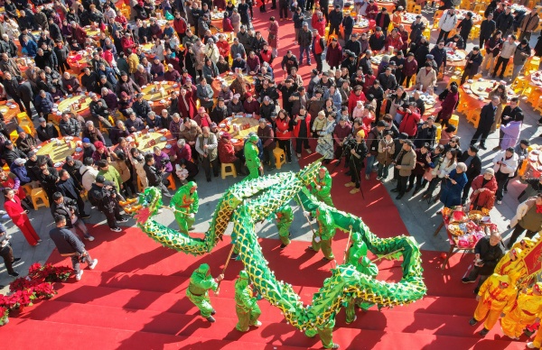 今年,后坞村村委联合民宿业主,邀请了村里570多位60周岁以上的村民免费吃年猪饭。众人一边看着舞台上精彩的演出,一边品尝鲜嫩美味的菜肴,吃得满嘴流油、齿颊留香,洋溢着阵阵笑声。