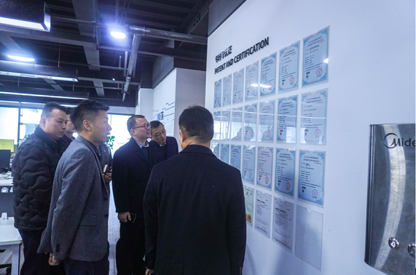 图说:调研组一行参观法保网荣誉资质墙 采访对象提供(下同)