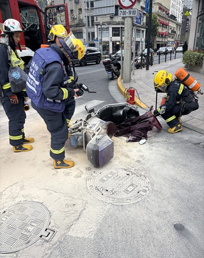 新民晚报讯(记者 徐驰)昨天,四川北路海宁路路口发生一起电动自行车自燃事故。所幸的是,虹口交警及时到场扑救,并未造成重大损失。