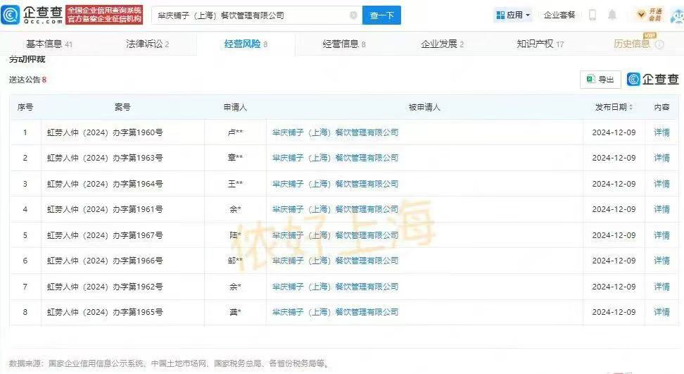 芈庆铺子涉及劳动仲裁的就有8起