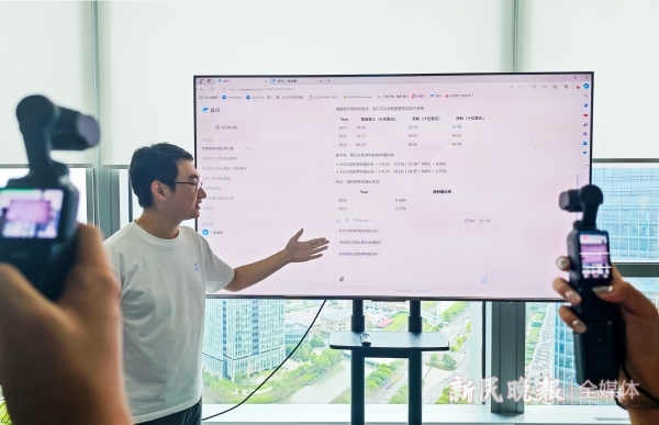 资料图:2024世界人工智能大会前夕,阶跃星辰工作人员介绍AI智能助手“跃问” 新民晚报记者 陶磊 摄(下同)