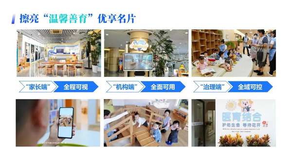 温馨善育。我们率先在全市域出台生育支持政策,大力发展普惠托育服务,千人托位数达4.5个,普惠托位占比76%,安心托成为“浙有善育”示范项目,获全国婴幼儿照护服务示范城市。