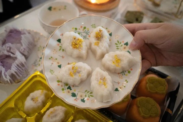 这家糕点店火到央视节目《美食中国》也介绍过。除了定胜糕之外,这家店把糕点做出了各种新花样:芝麻糕、薄荷糕、黑米糕等。桂花流心糕是招牌款,常温状态下咬一口就流心了,吃完嘴里满是桂花香。