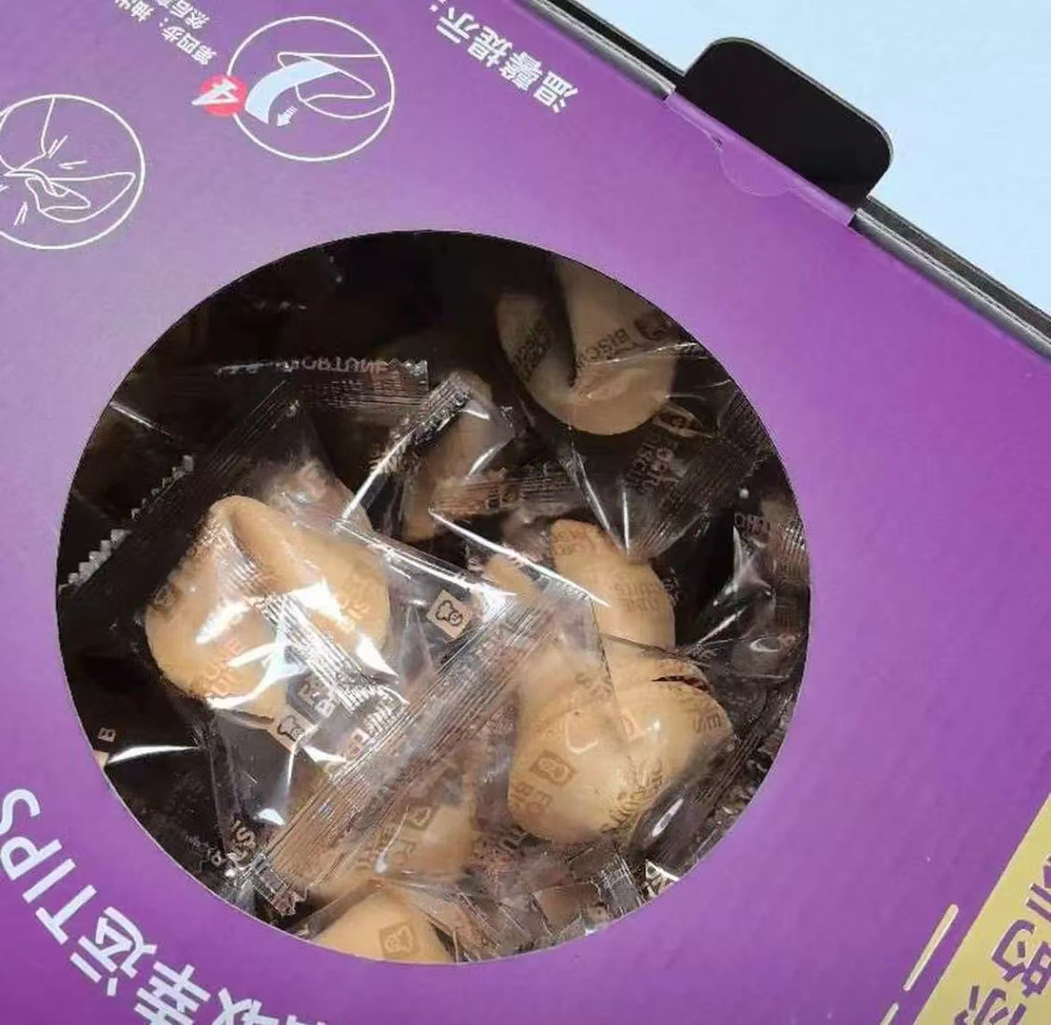 这款饼干的外包装被设计成一个抽奖盒,还标注了正确的“打开方式”。