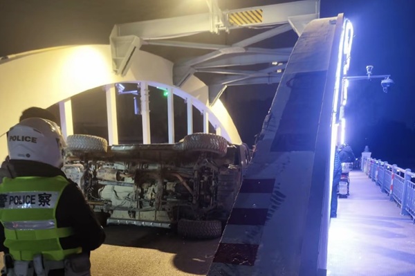 据目击市民介绍,当时,一辆SUV车正行驶在定海桥桥面上,驾驶员疑似操作不慎,车辆发生侧翻。由于定海桥桥面较窄,事故车辆横停在桥面上后,致使双向交通阻断,过往机动车和非机动车无法顺利通行。幸运的是,驾驶员及时从车内撤出,并未受伤。