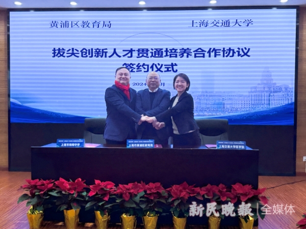新民晚报讯(记者 陆梓华)为进一步探索区域内高等教育和基础教育拔尖创新人才贯通培养路径,黄浦区教育局今天下午和上海交通大学签约推出两个全新的“高中-大学”衔接培养项目。其中,上海市大同中学和上海交大电子信息与电气工程学院合作共建“未来卓越工程师班”,着眼于探索理工科人才梯队培养贯通接力模式;上海市向明中学和上海交大医学院基础教育合作办公室合作共建“振义班”,探索医学和生命科学领域拔尖创新人才早期培养的实践路径。这也是黄浦区布局高中大学衔接培养项目、加速构建基础学科拔尖创新人才联动培育体系的又一重要举措。