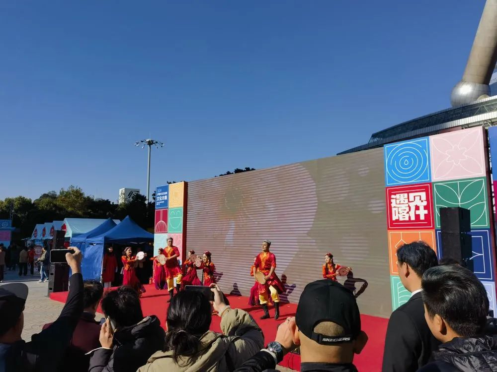 市民游客在“遇见喀什”沪喀市集观看歌舞表演