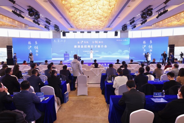 图说:德清在沪举办以“接沪奔跑 多链融合”为主题的招商引才推介会。赵宁 摄(下同)