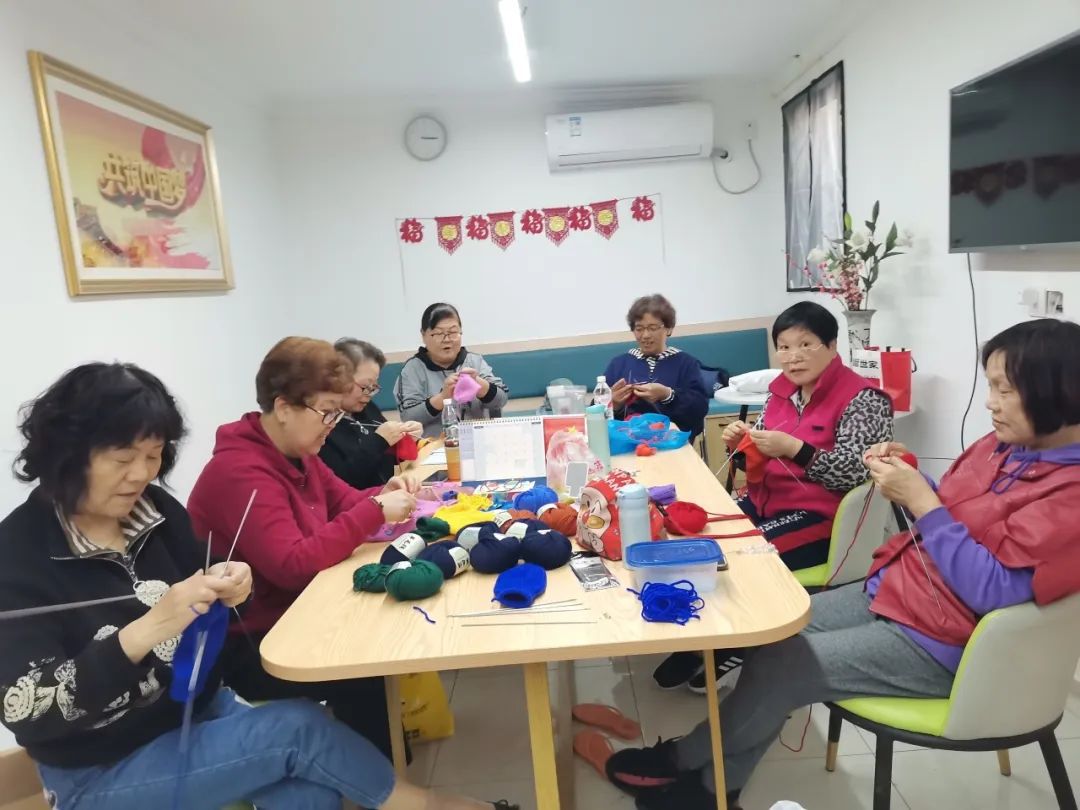 阿姨们来自成立了十余年的西镇妇女编织班,编织班的成员基本都是老伙伴志愿团队的核心成员,平均年龄在65岁以上。她们定期相聚在一起编织手工制品,有时是毛衣,有时是帽子,有时是手套。手工制品完工后,她们会把这份温暖送给街道困难老人、社区阳光之家的“阳光宝宝”和偏远地区的孩子们。