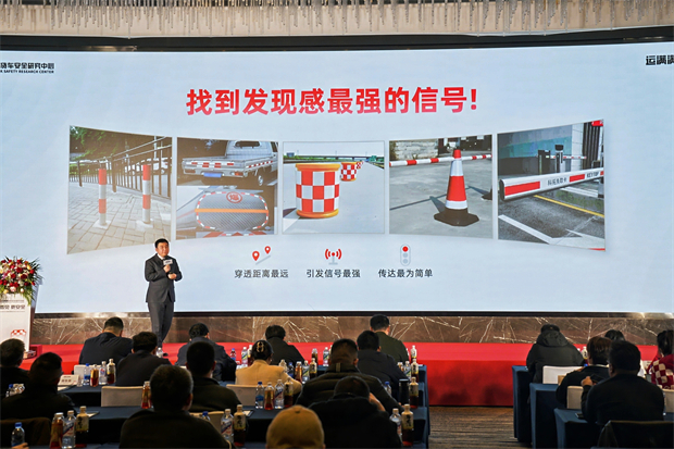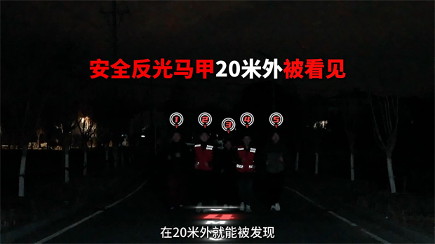 活动现场,安全研究中心发布了真实道路测试,从中可以看到,采用红白格设计的运满满雨布,相比普通货车,发现率能够显著。在夜晚环境中,没有穿着安全马甲的司机约5米距离能够被发现,而穿着运满满反光马甲,在20米外都能明显发现!