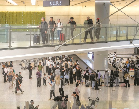 上午,虹桥国际机场迎来大批返程旅客 本报记者 陈梦泽 摄