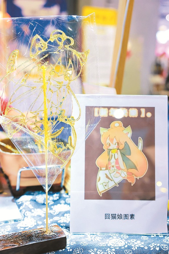 本届CP展还专门设置了“次元闹传统”展区,成为推动老字号品牌、非遗技艺与动漫IP深度融合的创意工坊。展区内,糖塑、宋锦、绒花、剪纸等十多项非遗技艺与《明日方舟》《画江湖之不良人》等热门IP携手联动。掐丝珐琅传承人陈漪老师正以“掐丝”勾勒轮廓、“点蓝”注入灵魂的古老技艺,重塑《阴阳师》世界的风华角色,让这项非遗在与二次元文化的对话中,展现出跨越时空的生命力。