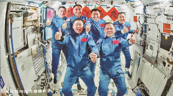 今天4时58分,在轨执行任务的神舟二十号航天员乘组顺利打开“家门”,欢迎远道而来的神舟二十一号航天员乘组入驻中国空间站,这是中国航天史上第7次“太空会师”。 新华社发