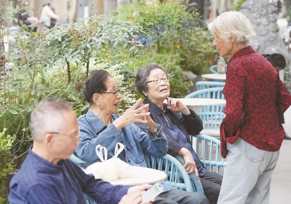 养老院里的老人在聊天解闷 本报记者 张龙 摄