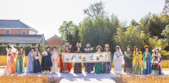 金黄的稻浪是舞台,辽阔的蓝天是幕布。当身着隋唐宋明历代华服的模特,头戴珍宝冠饰,从田埂缓缓走来时,历史与当下在此刻交融。隋代萧皇后的庄重,唐代公主李倕的雍容,宋代皇后“龙凤花钗冠”的繁复华美,明代皇后“九龙三凤冠”的威仪……史册的华章在田间地头化作了流动的画卷。风吹过,稻穗低下头,与冠冕上摇曳的珠翠轻轻致意,开启一场跨越千年的对话。这是本月在上海崇明岛乡聚公社上演的四园共生稻田秀板块之一——“霓裳珠翠·稻田巡礼”。景观设计师俞昌斌与华润置地&万象服务旗下润泽美好经过十年酝酿,在这座国际生态岛上,以天地为幕、稻穗为章,用最诗意的方式,向世界诉说中国的生态智慧与乡村新篇。